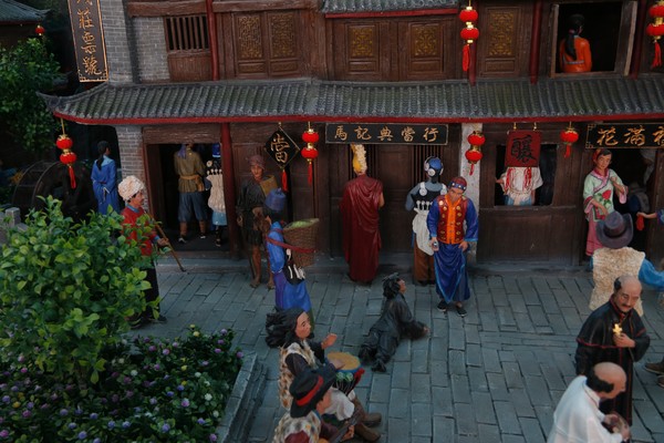 梦回徽州:展示的是我们徽州文化。边上的铜雕是展现的是徽州行当,像有卖花生、卖莲藕等等。说到徽州,大家都会想到徽商,墙上是我们古徽州的一句谚语“前世不修,生在徽州,十三四岁,往外一丢”,意思是说徽州地区以前是山地极...