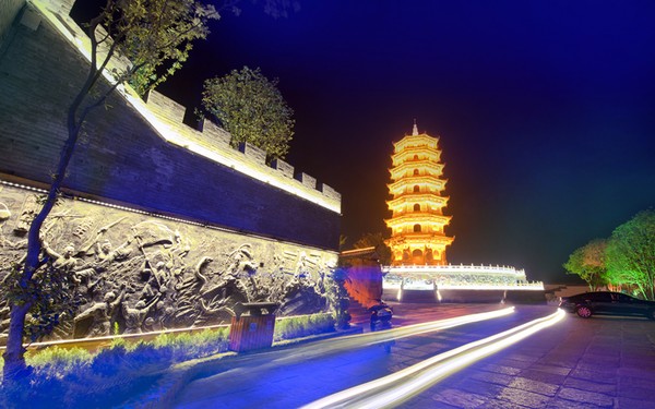 名称:万佛塔 简介: “万佛塔”,由河北曲阳的草白玉筑砌而成。塔共7层,呈8面,高33.3米,由塔基、塔身、塔刹、刹杆组成,塔底直径33米,塔基占地870平方米。塔身逐层收紧、渐迭而上...