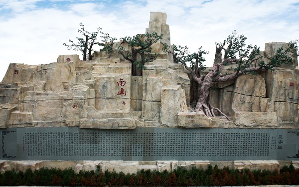 名称:寿比南山文化墙 简介: 主大门左边墙体上刻有古代幼儿启蒙读物《三字经》,是由我国著名书法家、北京人文大学原校长周宏兴所题。在文化墙上面栽有几颗老松树,故命名为“寿比南山”文化墙。其高约7米,长约25...